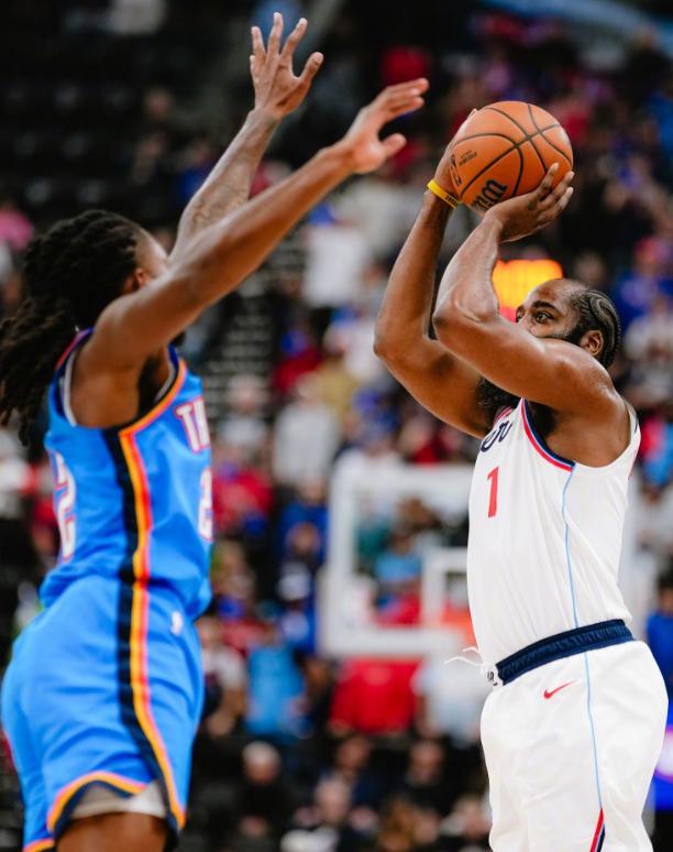 大冷门!快船对飙卫冕冠军:单核哈登22+5梦回巅峰,奇兵轰15分